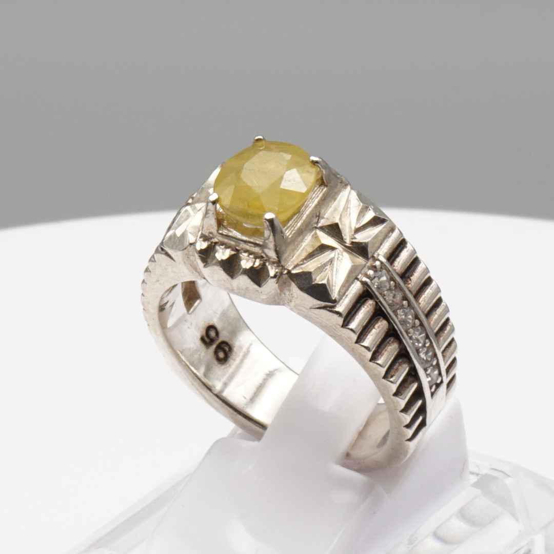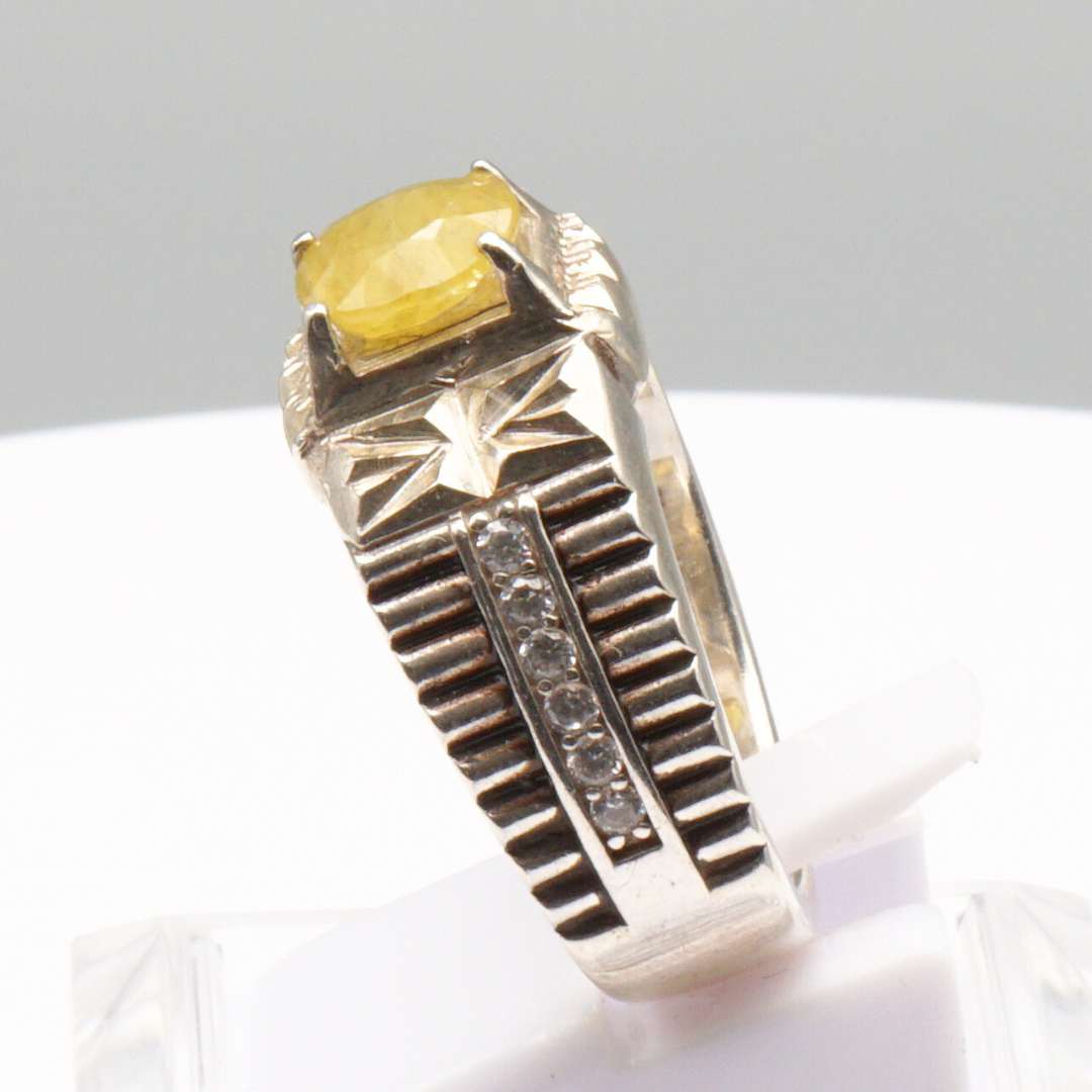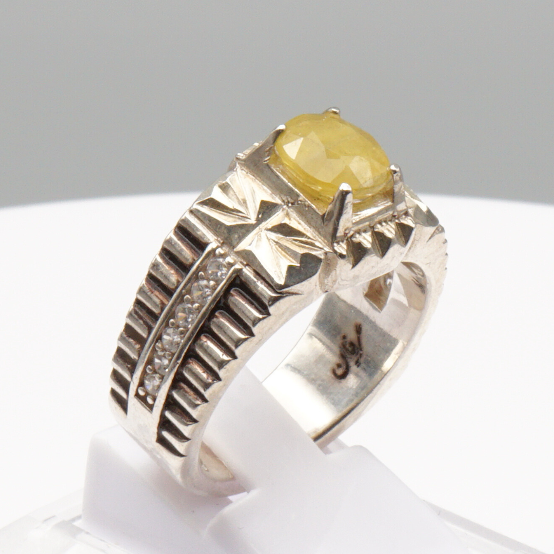 Ein markanter Herrenring aus hochwertigem 925 Sterling Silber, in sorgfältiger Handarbeit gefertigt und mit einem echten gelben Saphir besetzt.