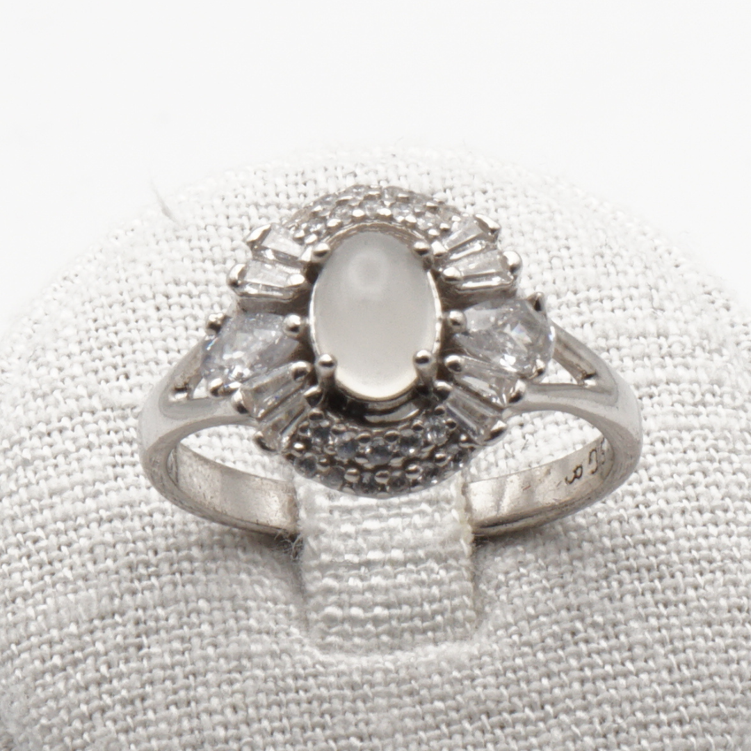 Ein stilvoller Damenring aus hochwertigem 925 Sterling Silber, besetzt mit einem echten Mondstein. Der sanft schimmernde Edelstein zeigt die typische milchig-weiße Transparenz mit dezentem Lichtspiel und wird von einer fein ausgearbeiteten, eleganten Fassung harmonisch umrahmt. Ein zeitloses Schmuckstück mit ruhiger, edler Ausstrahlung.