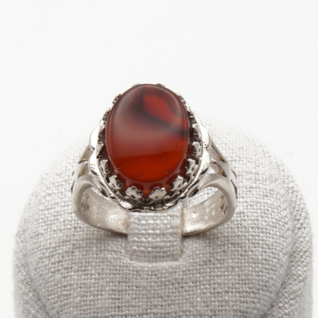Die detailreiche Silberfassung unterstreicht die Tiefe des Achats und verleiht dem Ring eine kraftvolle, zugleich elegante Ausstrahlung. Ideal für Liebhaber authentischer Edelsteine mit Geschichte.