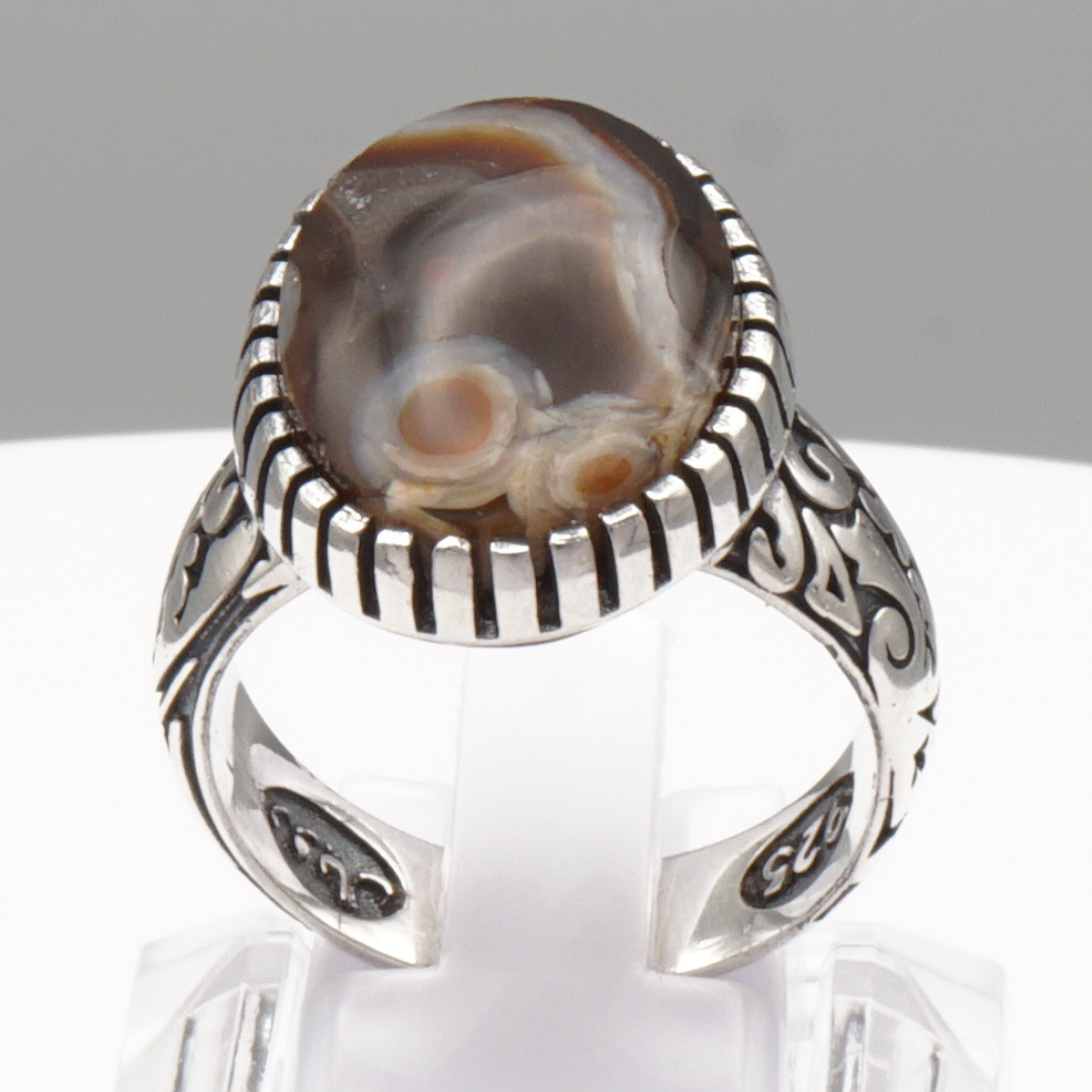 Ein außergewöhnlich ausdrucksstarker Herrenring aus massivem 925 Sterling Silber, in traditioneller Handarbeit gefertigt und mit einem beeindruckenden natürlichen Jemen-Achat Dawudi besetzt.