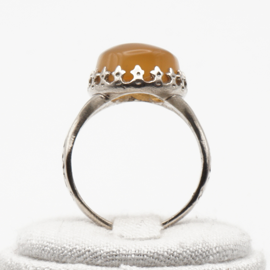 Ein markanter Herrenring mit klassischer Ausstrahlung: Gefertigt aus massivem 925 Sterling Silber und besetzt mit einem echten Jemen-Achat in warmem Gelb-Honigton. Der fein gebänderte Stein zeigt eine ruhige, natürliche Farbverteilung und macht jedes Exemplar zu einem unverwechselbaren Unikat.