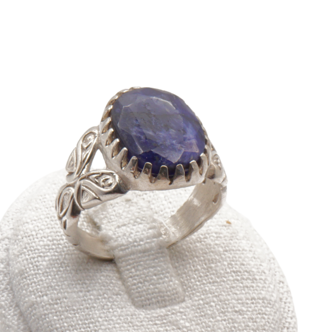 Die solide Silberfassung unterstreicht den Charakter des Edelsteins und sorgt für eine maskuline, zeitlose Optik. Jeder Saphir ist ein Naturstein und damit ein Unikat in Farbe und Zeichnung.