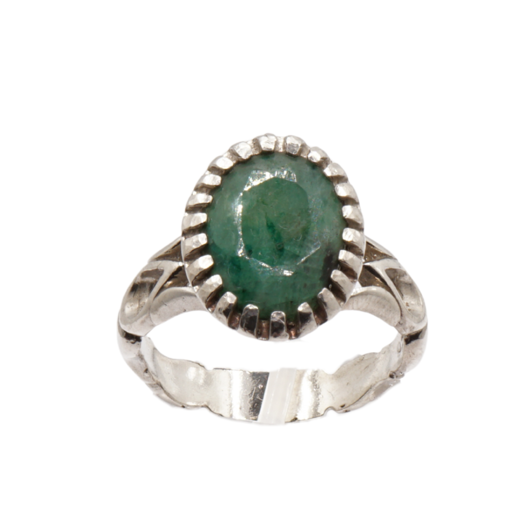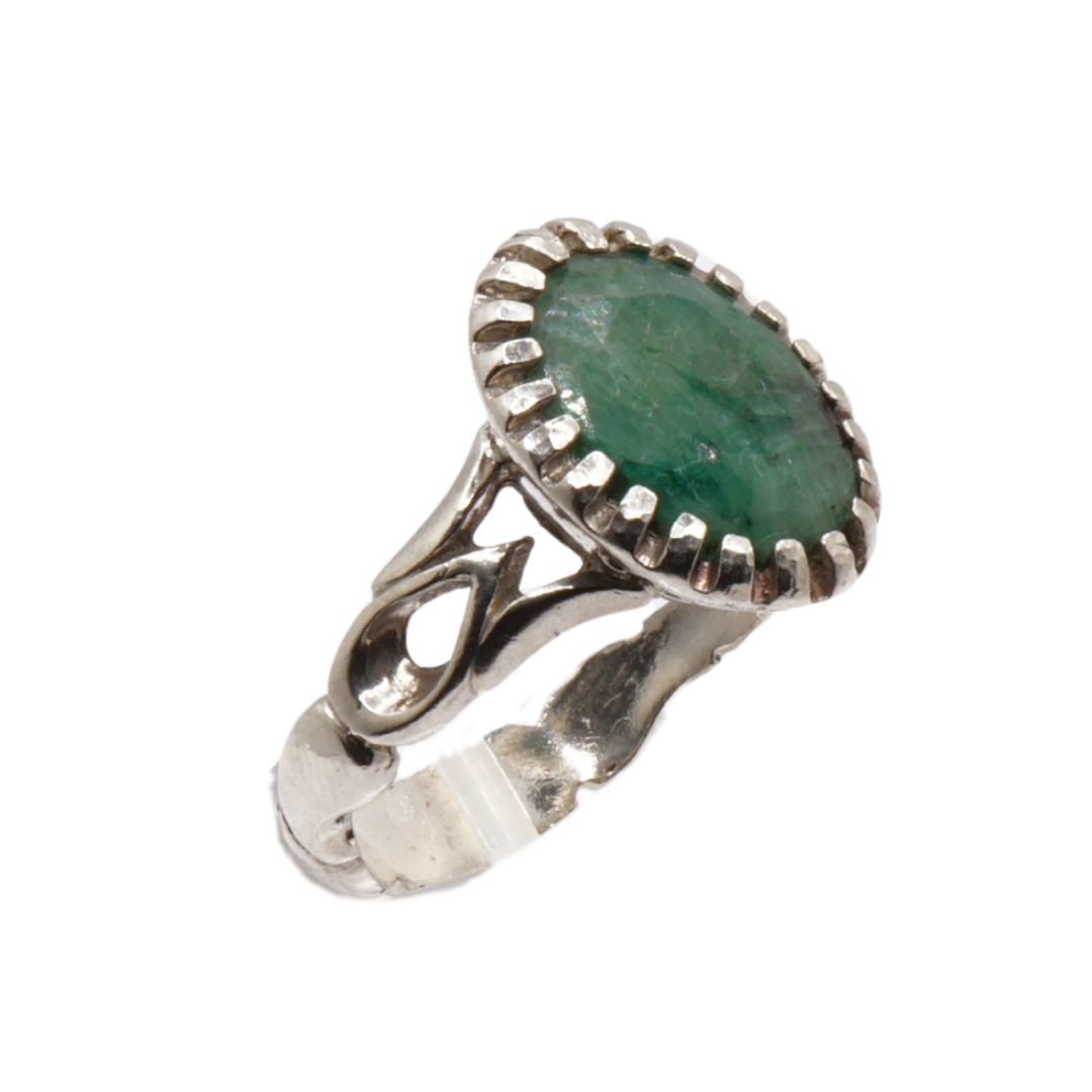 Ein markanter Herrenring aus echtem 925er Sterling Silber, gefertigt in detailreicher Handarbeit. Der große echte Smaragd mit natürlicher Maserung besticht durch sein sattes Grün und seine lebendige Tiefe – jedes Stück ist ein Unikat der Natur.