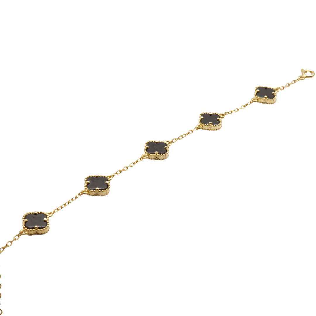 925 Silber vergoldet – Damen-Set Kleeblatt Onyx Halskette + Armband + Gratis Etui + Schmuckbox