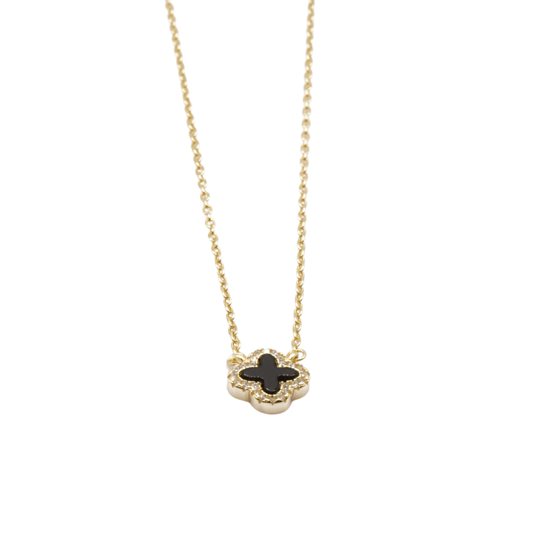 Design: Feines Kleeblatt mit echtem Onyx, perfekt abgestimmt auf die Halskette