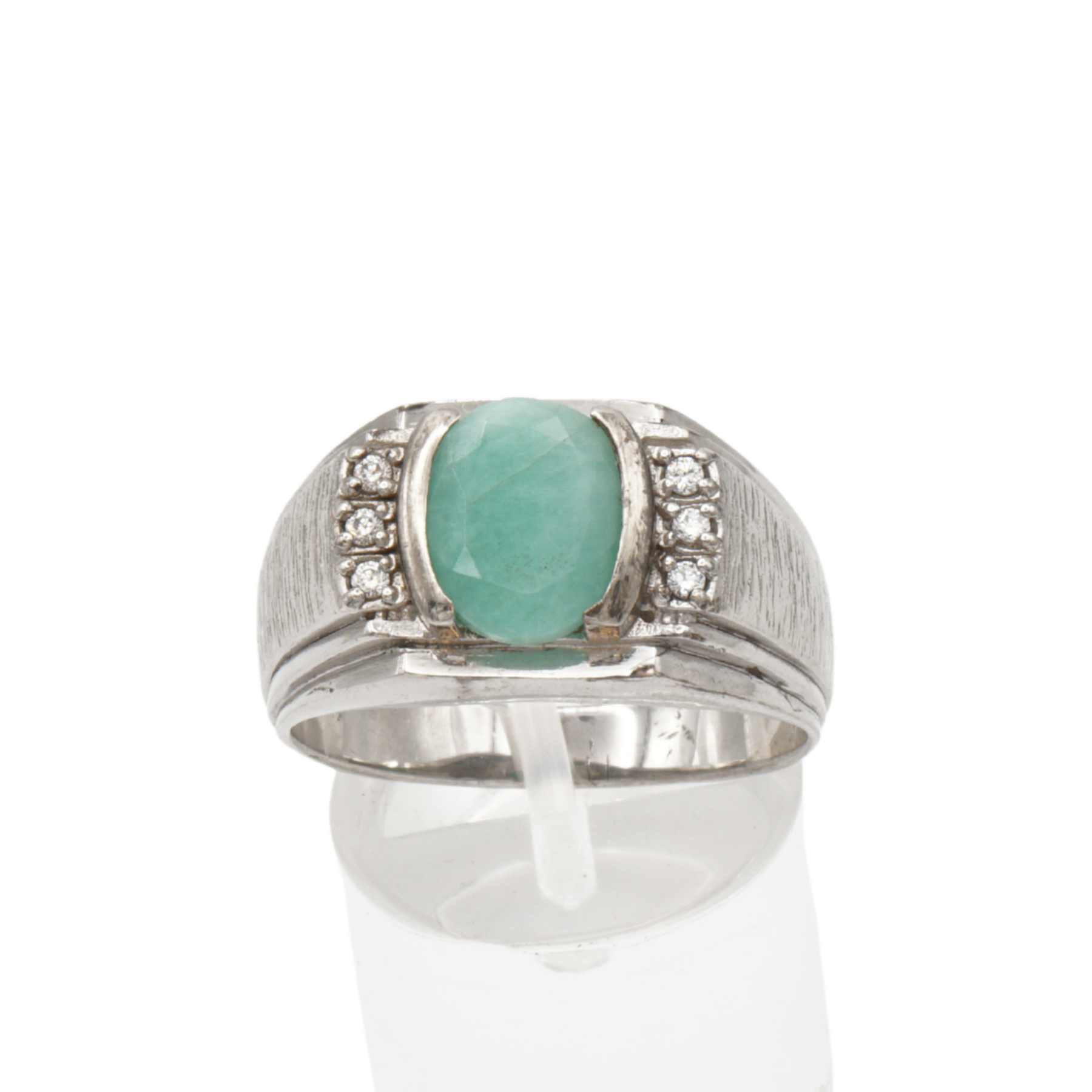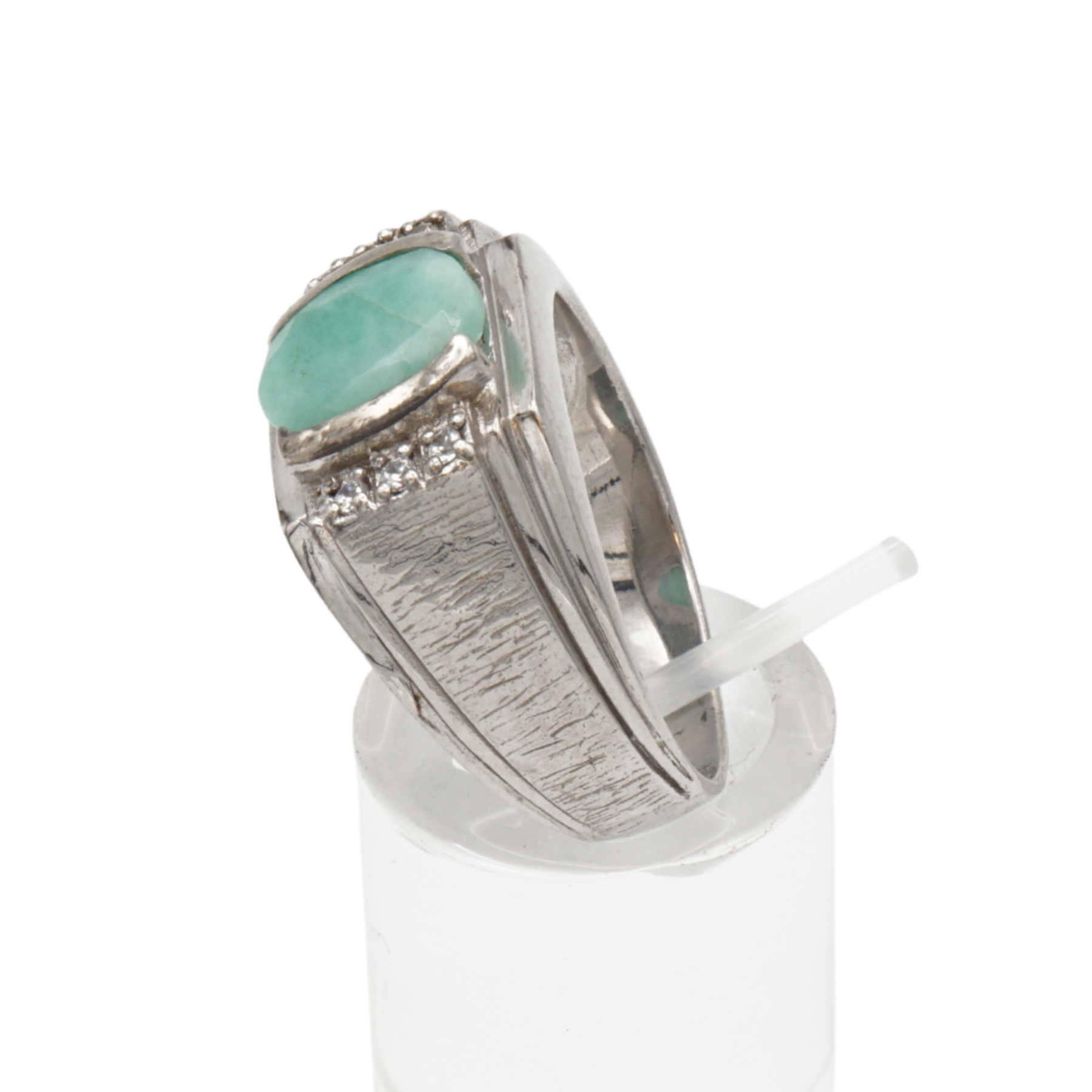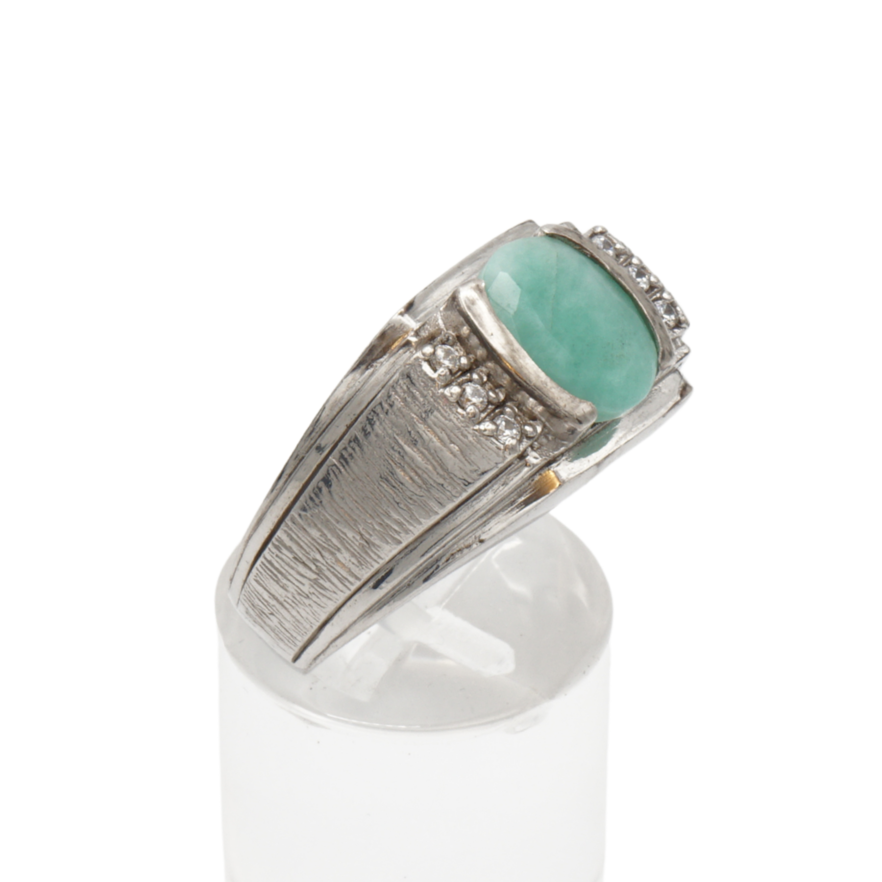 925 Silberring mit echtem Aventurin und 6 Zirkonia-Steinen