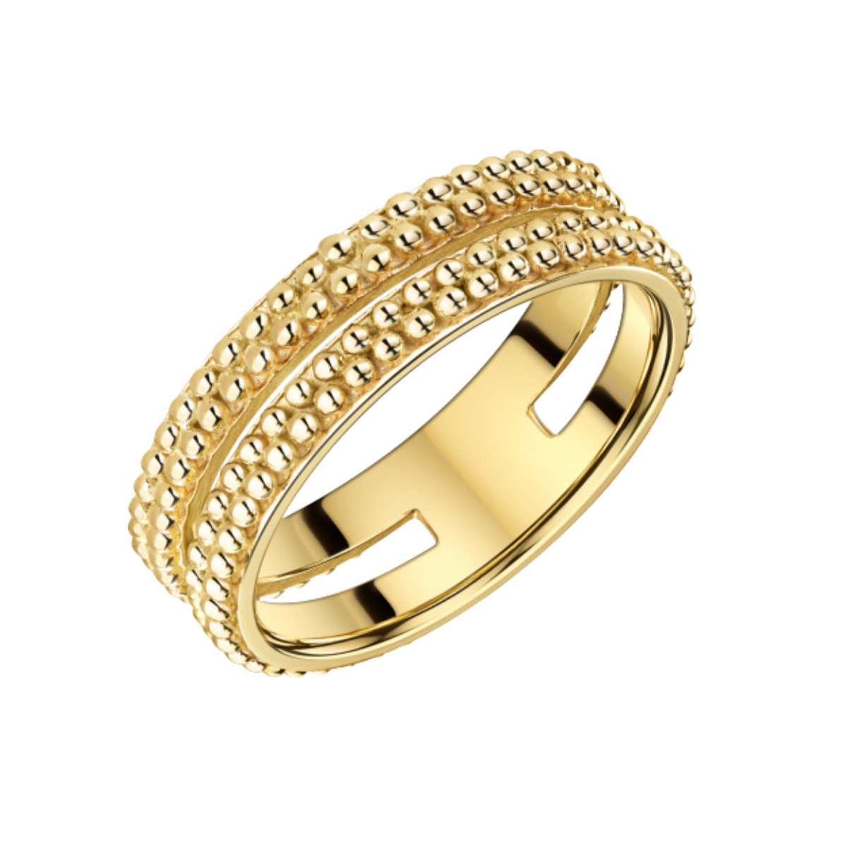 Dieser elegante Damenring aus recyceltem 925er Silber ist mit einer edlen 18 Karat Vergoldung veredelt. Die prägnante Dots-Struktur verleiht dem Schmuckstück eine besondere Haptik und einen modernen, doch zeitlosen Look.