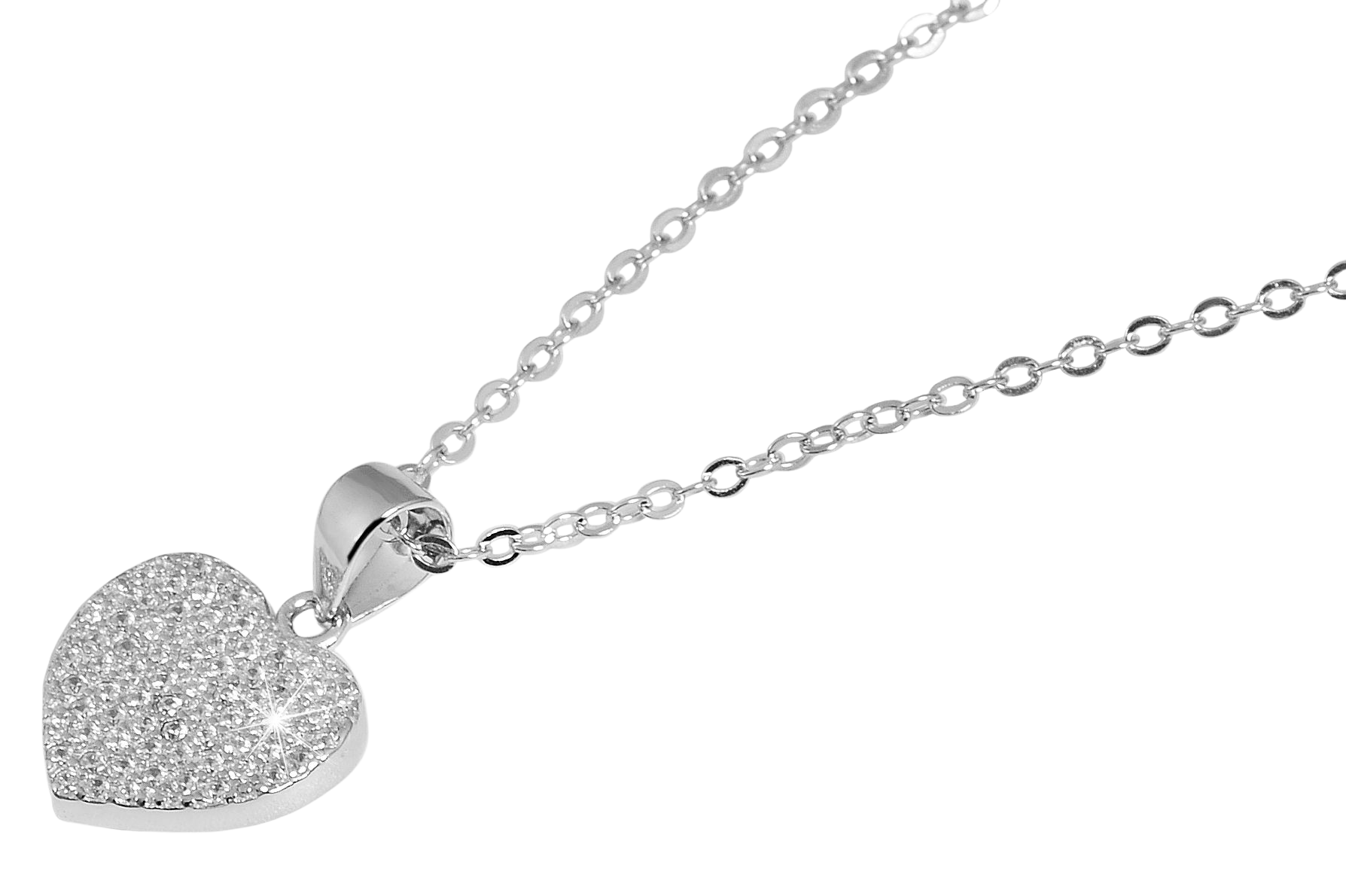 Kette "Heli" mit Herz-Anhänger 925/- Echt Silber und Zirkoniabesatz, 43+5 cm, 925/rhodiniert