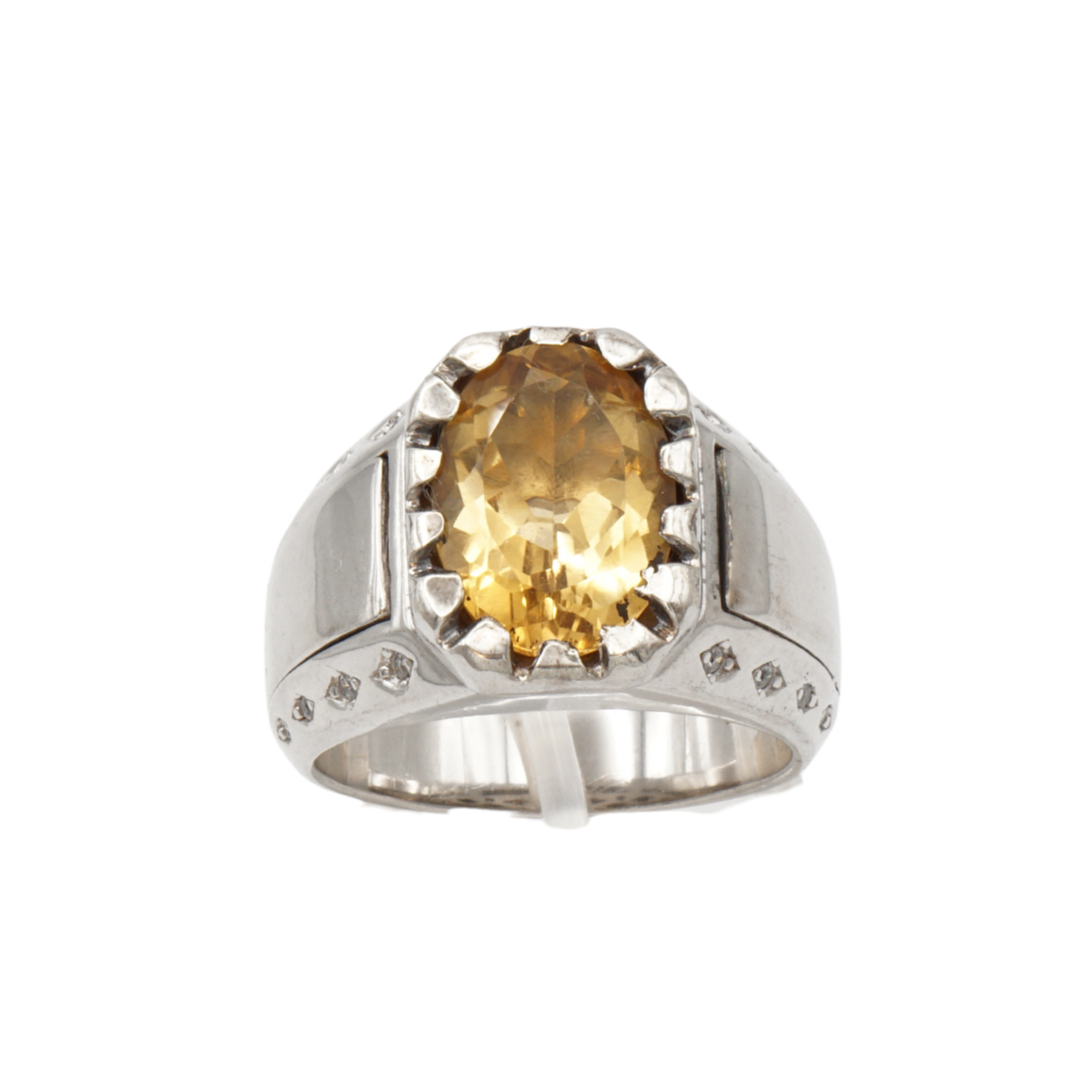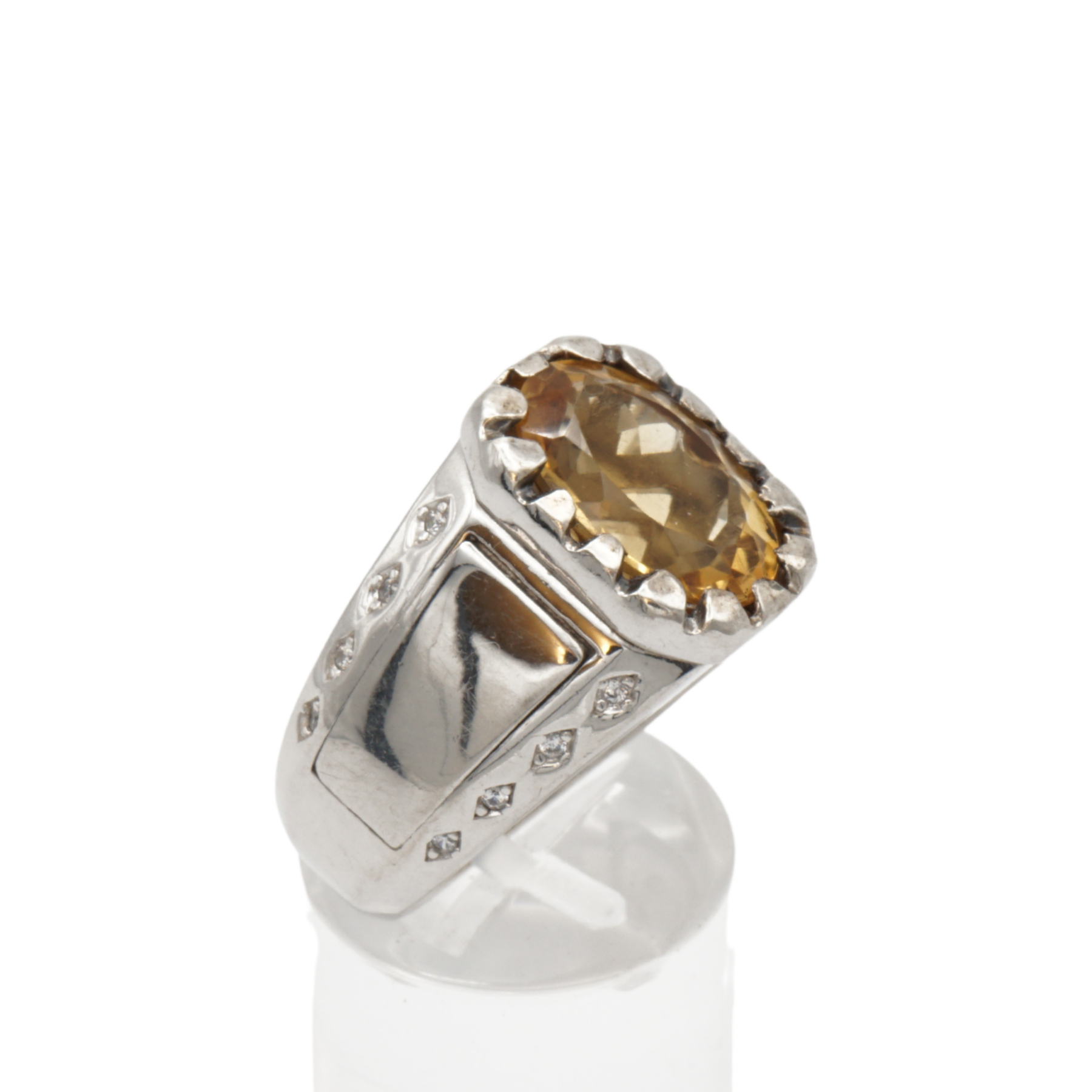 Massiver 925 Silberring mit echtem Citrin und 16 Zirkonia-Steinen – Handarbeit