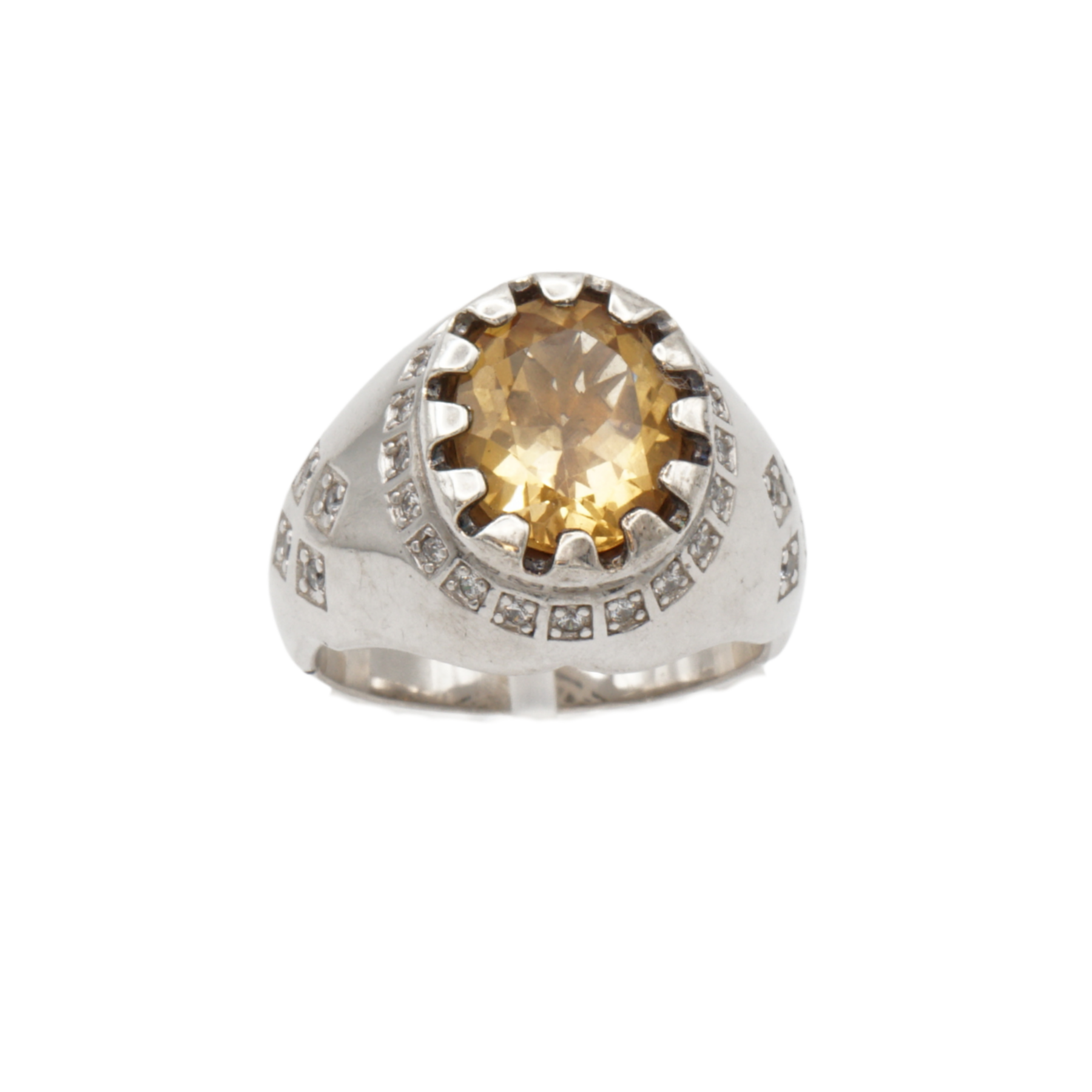 Massiver 925 Silberring mit echtem Citrin und 29 Zirkonia Steinen - Handarbeit