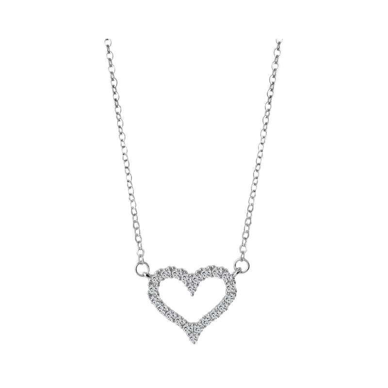 "Natti" Halskette mit Herzanhänger, Zirkoniabesatz, 925 / rhodiniert - Echt Silber