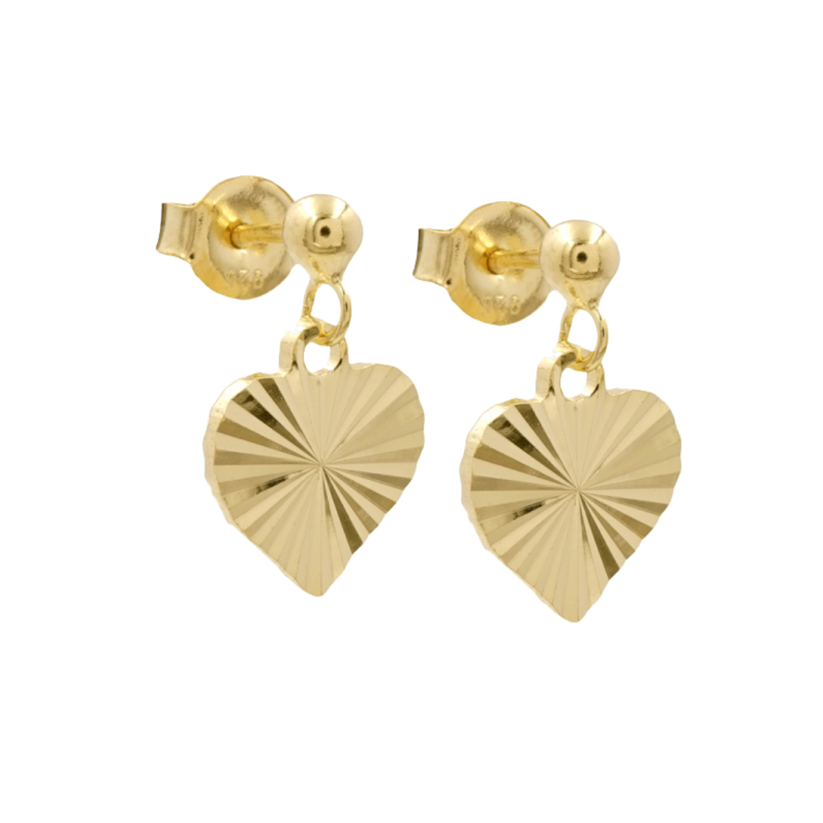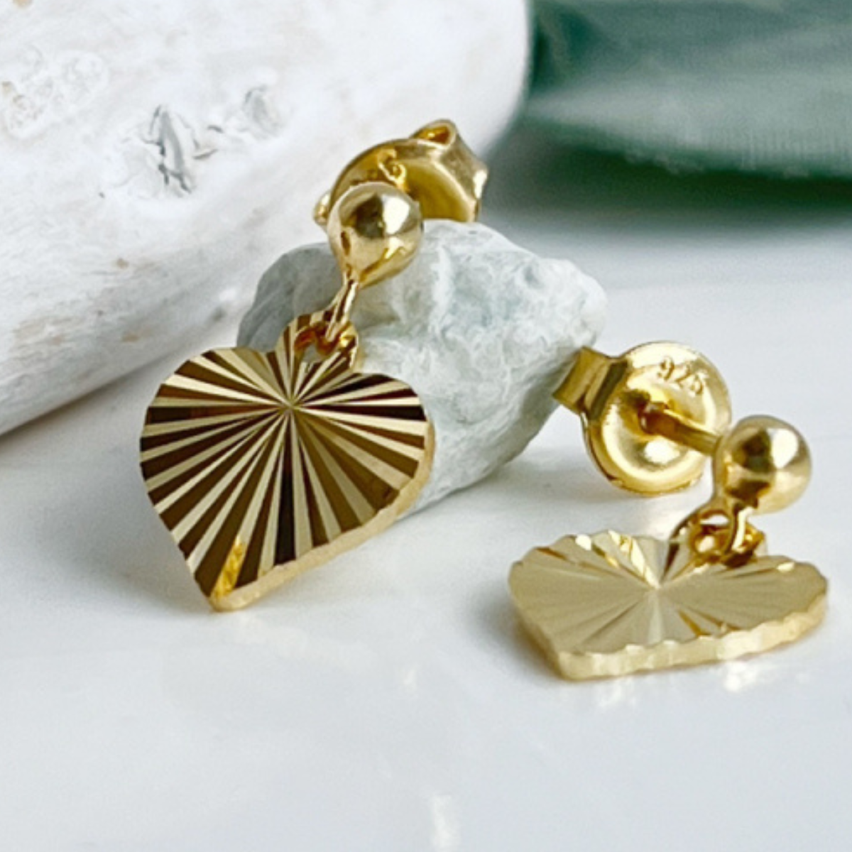 Zart, feminin und mit besonderem Glanz – diese stilvollen Ohrstecker in Herzform wurden aus hochwertigem 925er Sterlingsilber gefertigt und mit 1 Mikron 18k Gelbgold vergoldet.