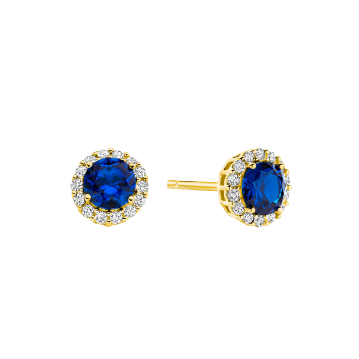 Ohrstecker mit 30 Zirkonia blau/weiß vergoldet