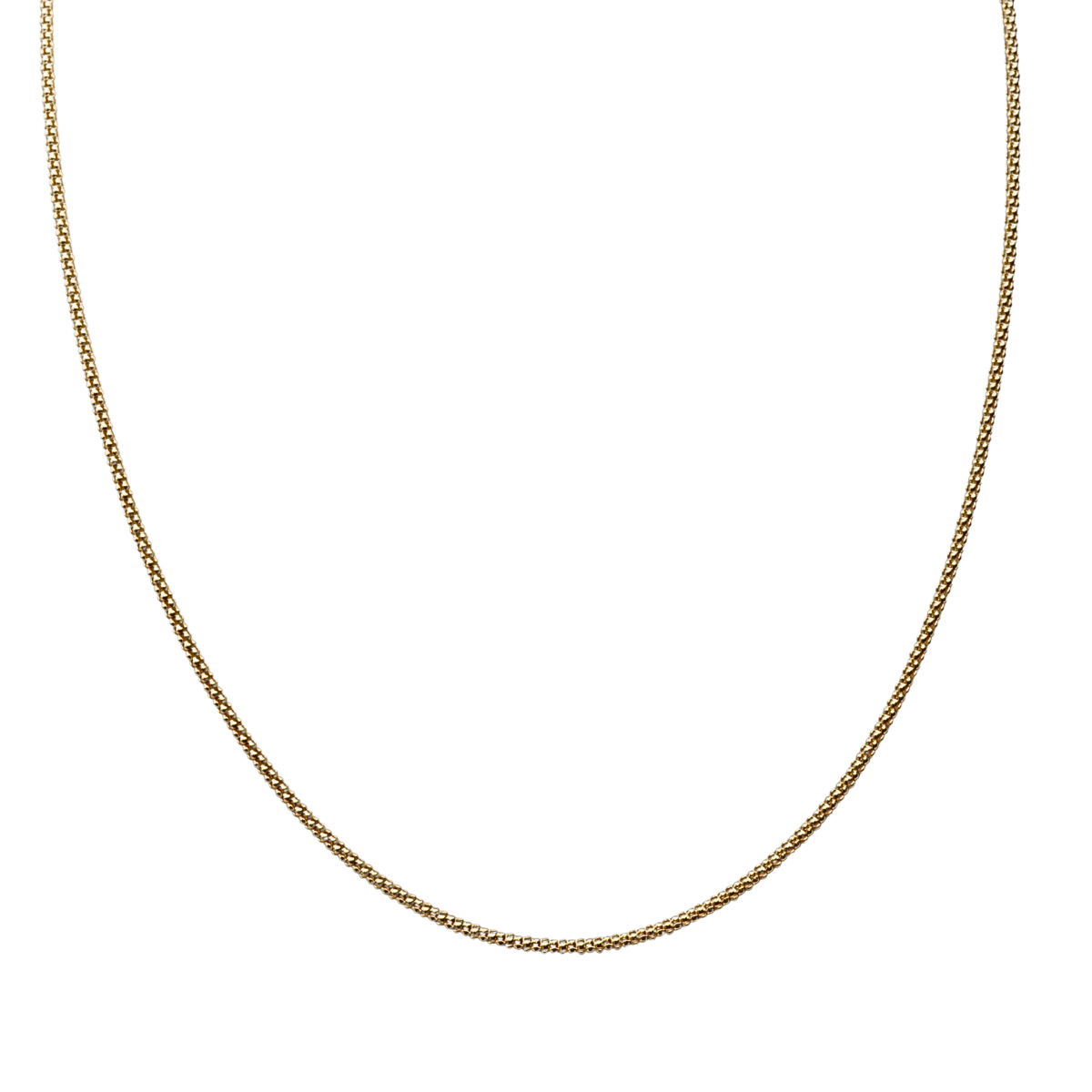 Diese zarte Popcornkette aus massivem 925er Silber ist mit einer hochwertigen 18k Vergoldung veredelt und vereint edle Optik mit angenehmem Tragekomfort. Mit ihrer feinen Breite von nur 1,5 mm wirkt sie dezent und gleichzeitig luxuriös – perfekt für minimalistische Looks oder als elegante Basis für deine Lieblingsanhänger.